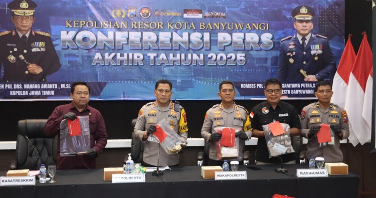 BANYUWANGI — Polresta Banyuwangi Polda Jawa Timur (Jatim) berhasil menyelesaikan 1.281 perkara dari 1.433 laporan Polisi sepanjang tahun 2025.
